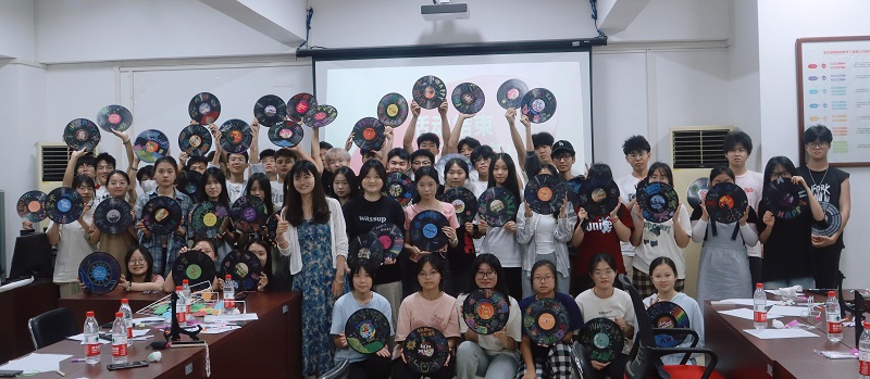 活动以小组形式开展,分为三个流程:首先,由涂媚老师带领同学们进行破冰活动;随后,涂媚老师为同学们讲解了情绪管理的相关知识,情绪是内心世界对外部世界的反应,是我们感知世界的重要方式,引导同学们正确认识情绪的双面性;接着,同学们以“情绪”为元素,把自己的感受、故事都通过画笔绘制在唱片上。活动过程中,同学们有的选择用明亮的色彩来表达快乐与喜悦,有的则用暗淡的色调来反映忧郁与失落,唱片上的每一个色彩、每一笔线条,都是同学们内心的真实写照,无声地诉说着同学们的情绪故事。