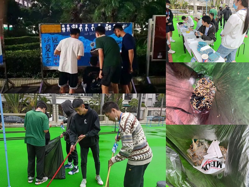 10月23日,由后勤处举办的无烟学校系列宣传活动正式拉开帷幕。宿管会的学生通过海报签名的形式,向广大同学倡议“为了自身的健康以及我们赖以生活的地球家园,放下手中烟草、让烟草远离我们的生活”,普及吸烟的危害和戒烟的益处。11月5日,在操场举行捡烟头比赛,比拼谁能在规定时间内捡到更多的烟头。活动形式新颖,吸引了近百人参加,共收集到近2000枚烟头,让广大同学非常直观的了解到校园吸烟的现状以及随手乱扔烟头对校园环境造成的破坏。