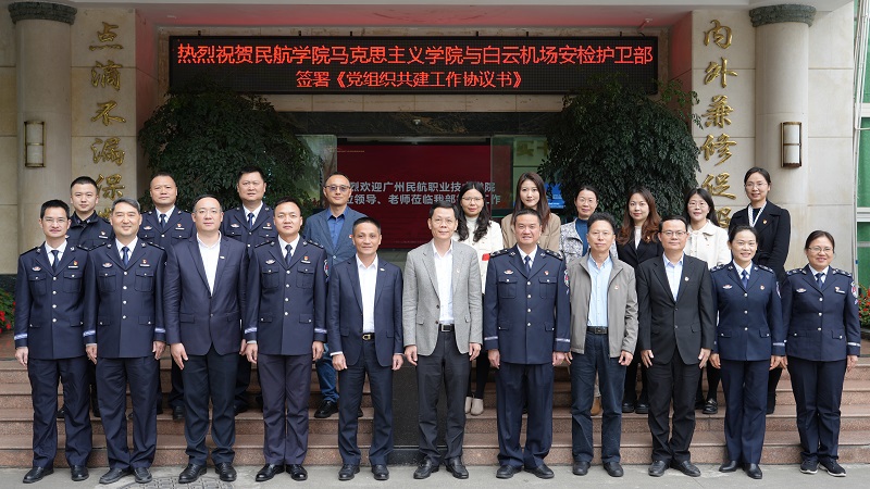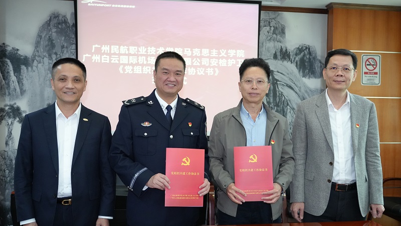 为进一步深化校企党建合作与交流,提升党建引领水平,推动思政课教学与行业实践教育深度融合,3月17日,我校马克思主义学院与广州白云国际机场股份有限公司安检护卫部开展党建共建交流活动,正式签署《党组织共建工作协议书》,共同探索党建结对共建发展的新路径。我校党委书记徐戊填、广州白云国际机场股份有限公司党委副书记、工会主席杨勇,以及我校马克思主义学院教师代表、广州白云国际机场股份有限公司安检护卫部领导参加了本次共建交流活动。