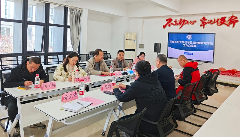 为深化职业教育改革,推动花都区“百千万工程”职业教育项目的实施。4月2日上午,花都区职业技术学校与我校民航经营管理学院在花都赤坭校区L1-216开展工作交流会,双方围绕电子商务专业3+2中高职衔接班的开办展开深入研讨。花都区职业技术学校利洪忠副校长一行4人,民航经营管理学院院长蔡昌、副院长綦琦,电子商务教研室主任于洪磊,学校“双百行动”驻花都区服务队裘宏伟等参加了此次会议。