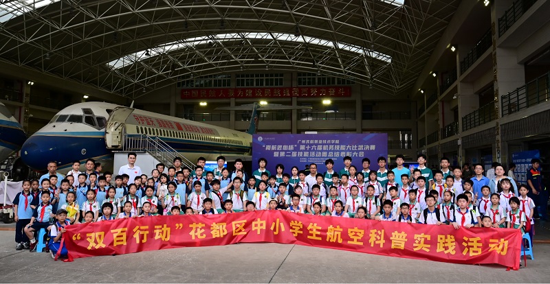 为贯彻落实省委“1310”工作部署,深入实施“百千万工程”,推动“双百行动”校地合作共建项目落地,4月23日下午,学校“双百行动”工作领导小组办公室组织飞机维修工程学院与花都区教育局联合举办“双百行动”花都区中小学生航空科普实践活动。来自花都区的百名中小学生走进白云机场校区,近距离感受航空科技与民航文化的魅力,开启了一场沉浸式的航空探索之旅。