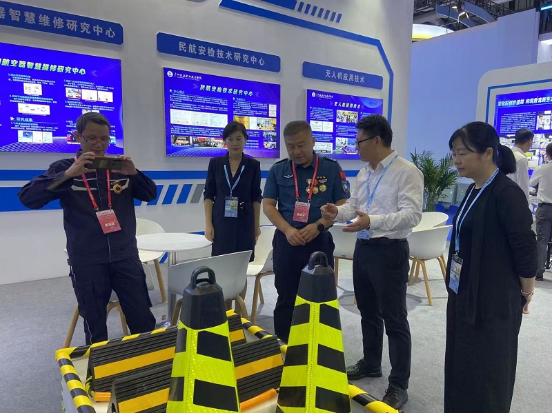 展会首日,民航局副局长韩钧一行亲临学校展台参观指导。学校党委书记徐戊填向局领导详细汇报了学校近期的科创成果。