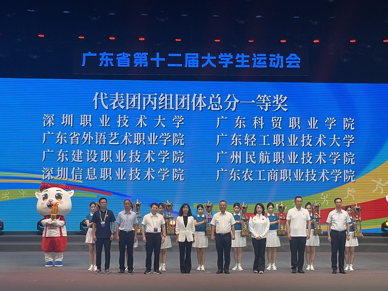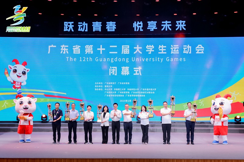 2025年5月6日至27日,广东省第十二届大学生运动会在暨南大学闭幕。本届赛事由广东省教育厅、广东省体育局主办,广东省学生体育艺术联合会、暨南大学、中山大学等单位承办。我校共派出12支代表队参赛,与来自全省79所高职院校的运动健儿同场竞技,凭借卓越的竞技实力和昂扬的团队风貌,在比赛中取得了优异成绩。5月29日的闭幕式上,涂卫军副校长、学工处宫宝成处长、体育教学部姜勇主任等代表出席并上台领奖。