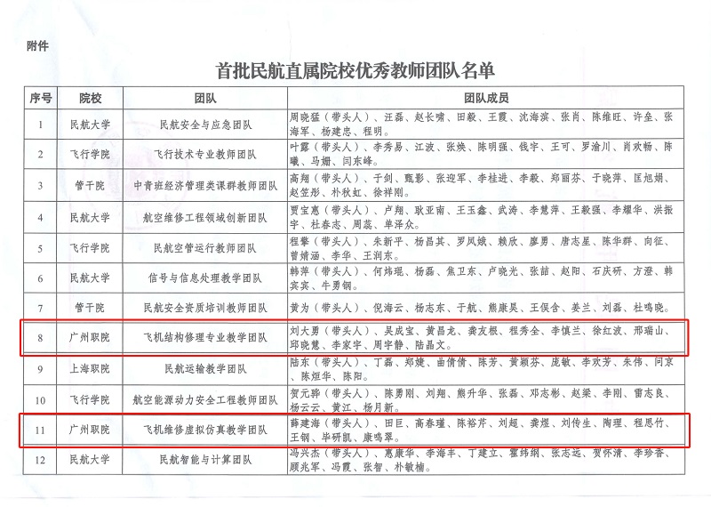 近日,从中国民用航空局传来喜讯,我校飞机结构修理专业教学团队、飞机维修虚拟仿真教学团队荣获“首批民航直属院校优秀教师团队”称号。这一殊荣不仅是对上述两支教学团队多年耕耘的高度认可,也是对我校教育教学质量的极大肯定。