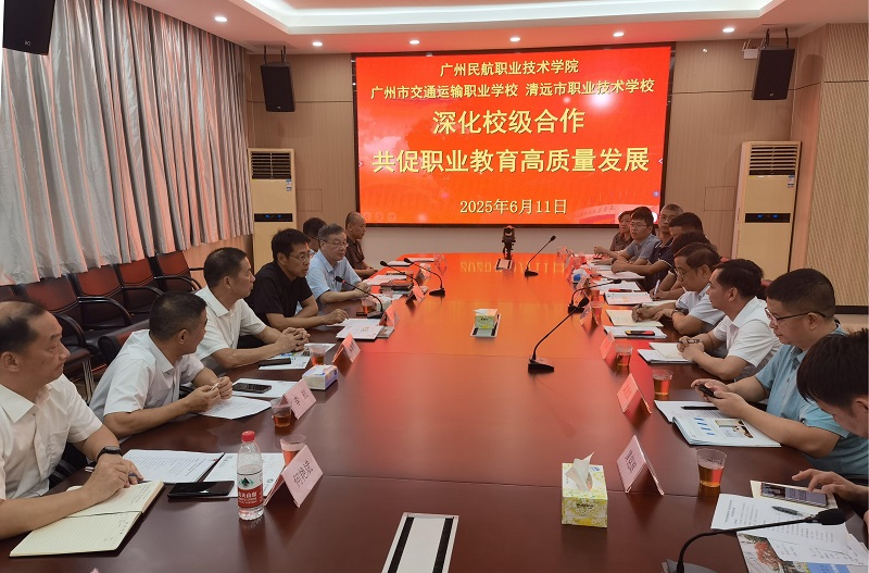 为贯彻落实《广东省教育厅关于实施职业教育结对帮扶行动计划(2024-2027年)的通知》的工作部署,6月11日,广州市交通运输职业学校党委书记姚卫红率7人团队、清远市职业技术学校党委书记肖光辉携5人团队一行到访我校,就人才培养合作展开深入交流。学校校长郭仁刚及校办、民航经营管理学院、无人机学院、教务处相关负责人热情接待并参与座谈。