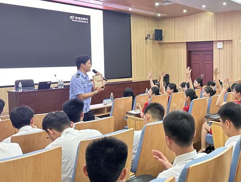 本次主题宣讲活动政、警、银、校多方联合组织开展,现场还设置了“断卡行动”加油站,给师生派发安全指南,指导安全用卡,活动现场气氛热烈,同学们积极参与互动,收获满满,切实筑牢了校园金融安全防线。