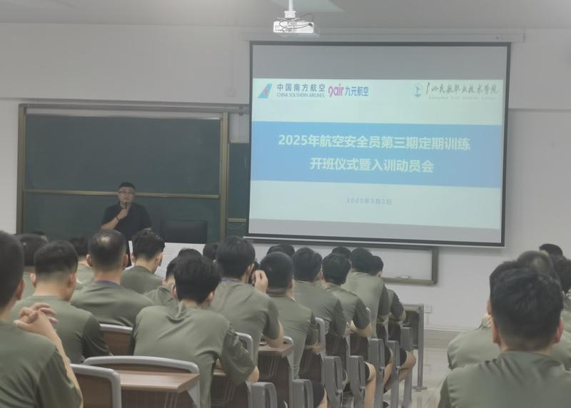 5月3日,2025年度我校航空安全员第三期定期训练在机场路校区顺利开班。来自中国南方航空公司与九元航空公司的152名航空安全员学员在我校开展为期28天的体能训练、技能训练、业务理论与桌面推演等方面的培训及考核。