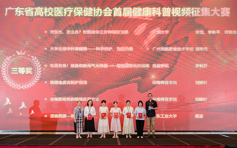 2025年4-6月,广东省高校医疗保健协会举办了“首届健康科普视频征集大赛”,共有30家高校提交了78个视频作品。通过第三方专家评审和网络投票,我校卫生所邱华丹医生的作品脱颖而出,荣获大赛三等奖,包小娟医生的作品获得优秀奖,我校获得优秀组织奖。