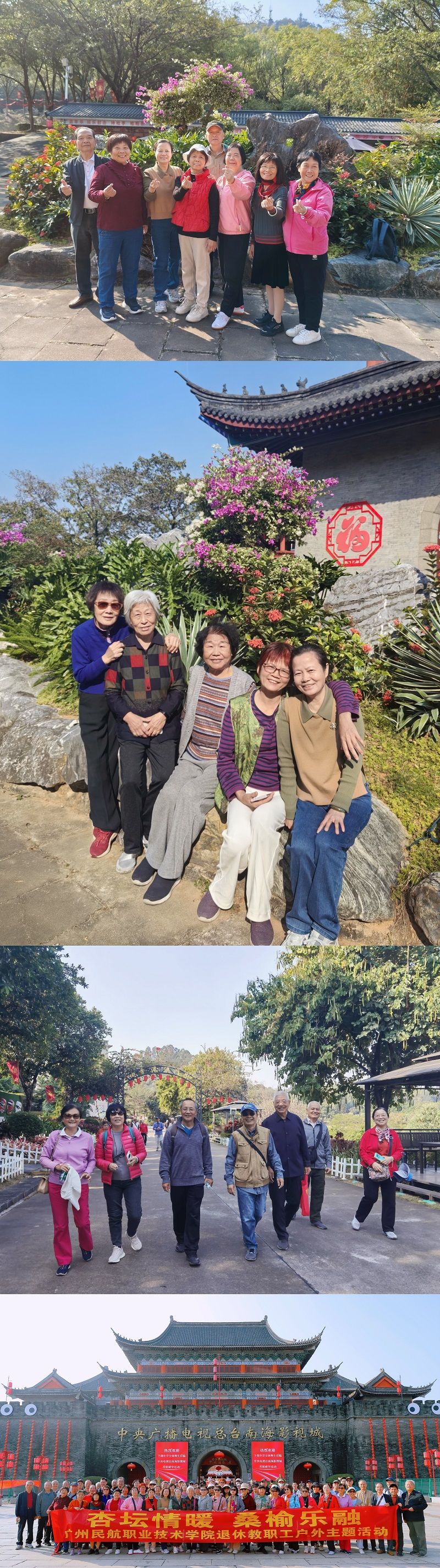 冬日和煦,情意浓浓。为丰富退休教职工的精神文化生活,弘扬尊老、敬老、爱老的优良传统,增进老同志之间的情感联络,2025年12月9日,工会退休办精心组织了一场以“杏坛情暖,桑榆乐融”为主题的户外活动,近百名退休教职工齐聚佛山市南海影视城,共赏景区美景,共叙往日情谊。