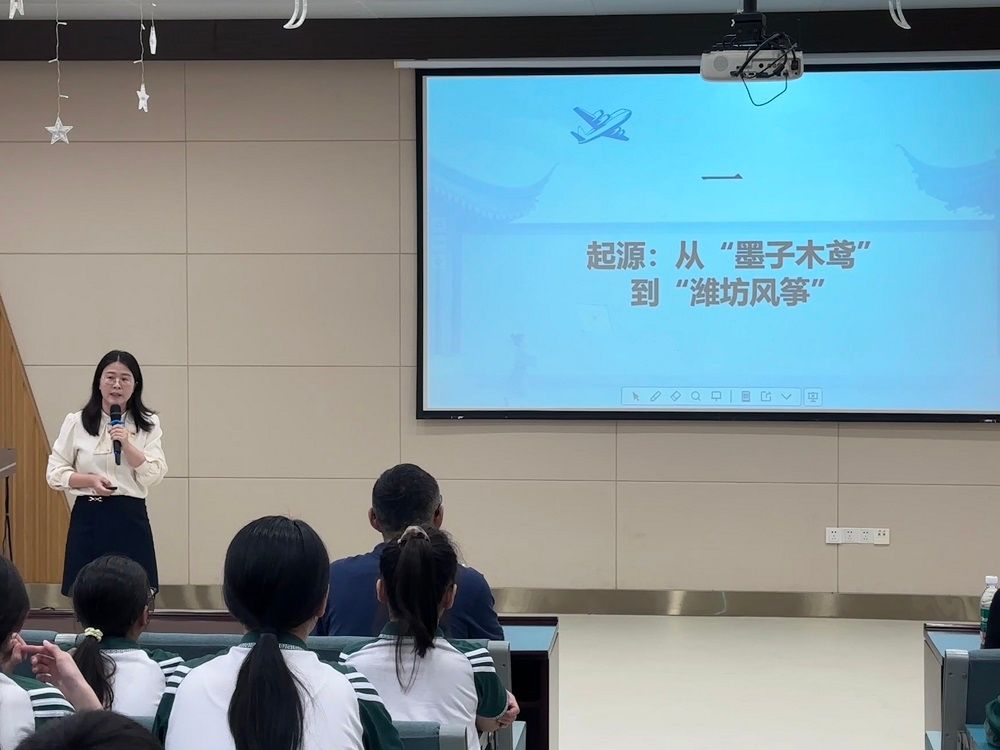 讲座以中华民族千年飞天梦想为脉络,从墨子木鸢与风筝所承载的浪漫想象,到近代航空先驱不懈探索的艰辛足迹,再到国产大飞机C919翱翔蓝天的辉煌成就,生动呈现了中国航空事业的壮阔历程。蔡老师以通俗易懂的语言和鲜活生动的案例,将科学知识与思政教育有机融合,引导同学们在感受科技创新力量的同时,增强民族自豪感与自信心,在仰望星空中坚定报国之志。