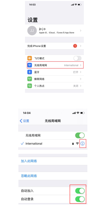 苹果手机需要把WIFI自动加入、自动登陆功能打开,否则会出现WIFI自动断开
