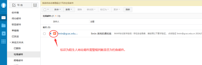 1、垃圾邮件文件夹的邮件不要轻易点开。