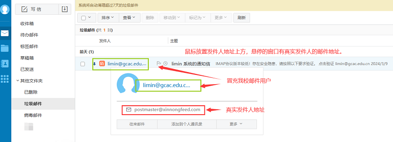 因为显示名实际上是可以随便设置的,要注意阅读发件邮箱全称。