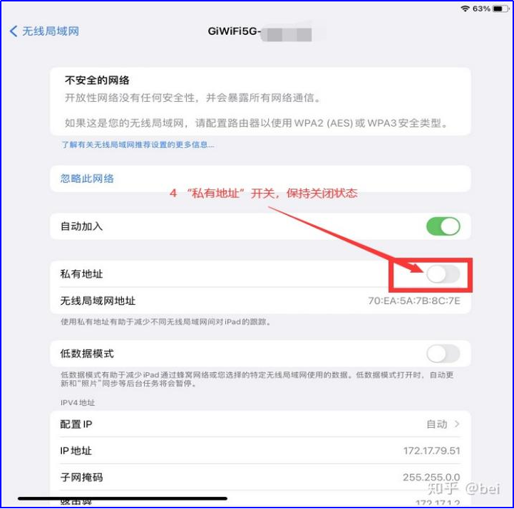3、苹果手机关闭随机MAC地址