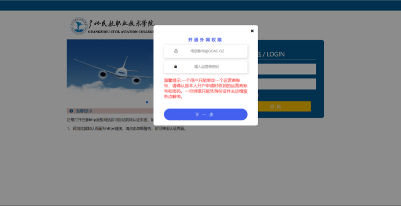 ①由于网络信息安全要求,每个用户使用公共网络必须进行网络安全认证登录;