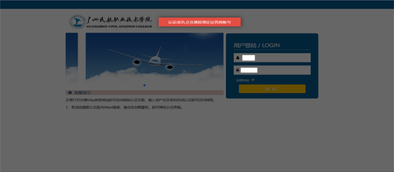 ③勾选同意协议,点击登录,弹出认证成功,见下图。