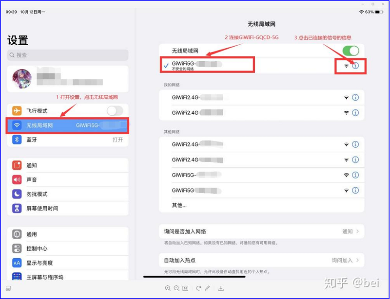 ①点击“设置”--点击“无线局域网”选择已连接的无线WLAN名称“gcac-5G”--点击右边的齿轮图标--“WiFi私有地址”关闭。