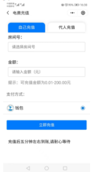 [电费充值]:学校宿舍用电充值如下图13,选择所住的校区、楼栋、楼层及房间号,输入缴费金额,选择支付方式,输入支付密码即可缴费。