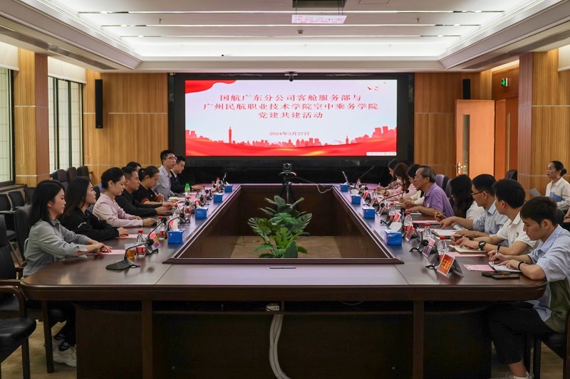 为进一步发挥党建引领作用,促进党组织的优势互补、资源共享,更好地推动党建与业务的双融双促,3月27日下午,空中乘务学院与国航广东分公司客舱服务部开展了党建共建活动。国航广东分公司客舱服务部党总支书记杨晨光,高级经理杨莉一行15人,空中乘务学院党总支书记张力平、副书记肖静、空乘教研室主任杨丽明、三办人员以及下设各支部委员参加了本次活动。