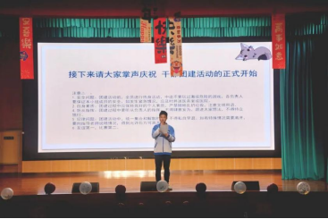 团建在院学生会带来的《桃花朵朵开》与《爱如潮水》中激情开场。院学生会的部长们热情洋溢,走下舞台,在观众席间纵情高歌,将现场互动氛围拉满。