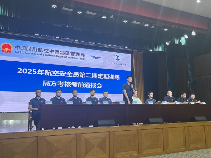 4月23日至27日,来自民航中南局公安局、民航广东监管局、九元航空、海南航空、深圳航空、湖南航空、桂林航空、东航武汉公司和北部湾航空的11位局方考官与监察员组成的考核组、督查组,来到我校机场路校区顺利完成了2025年第二期航空安全员定期训练考核工作。