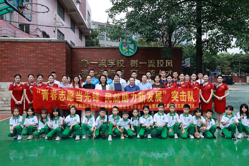 5月24日下午,空中乘务学院与三元里街团工委共同启动了“百千万工程”校地结对项目,在广州市白云区民航学校小学部成功举办了以“青春志愿当先锋 民航助力新发展”为主题的航空知识进课堂活动。空中乘务学院副院长肖静、学工办高颖仪老师和团总支书记许宁参加了本次活动。通过校地合作,普及民航知识,激发青少年对航空事业的热爱,为培养未来民航人才奠定坚实基础。