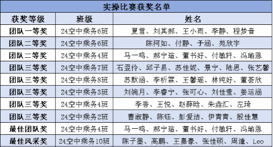 经过激烈角逐,竞赛评选出理论竞赛一、二、三等奖共8名,实操竞赛各级奖项及最佳团队、风采、个人奖共10组/名。获奖个人与团队不仅是专业领域佼佼者,更是文化传承创新者,其作品既体现航空餐饮服务知识的精准掌握,也彰显年轻一代对中华优秀传统文化的深刻理解与创新表达。
