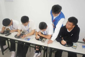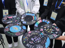 同学们指尖翻飞着设计唱片封面,轻声交流创作灵感,舒缓的音乐流淌全场,大家沉浸在手工与心灵共鸣的双重治愈里。