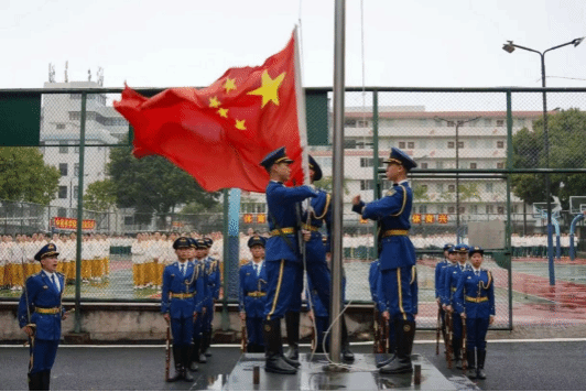 随着指挥员口令,国旗护卫队踏着铿锵步伐走来。他们身着制服,目光坚毅,每一步都沉稳有力,彰显着民航学子守护国旗的庄严与担当。随着国歌奏响,五星红旗冉冉升起,师生肃立注目,意气风发,以青春之名,赴时代之约,逐梦云端,笃行致远。