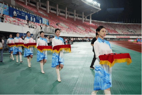 经过五天的紧密训练后,在4月23日晚上迎来了第十五届全国运动会足球(女子)邀请赛颁奖仪式志愿者们以民航人的专业素养从容应对挑战:嘉宾引导组凭借精准的动线规划,高效完成运动员、教练员及嘉宾入场流程;颁奖环节中,面对骤然而至的大雨,志愿者们毫无退缩,姿态优雅昂扬,以完美的姿态出场,以标准递奖动作和温暖笑容为获奖者送上“有温度”的荣耀时刻;团队协作环节也是无缝衔接,在30分钟内高质量完成全部流程。
