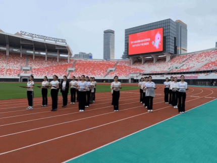 颁奖结束后,执委会相关部门通过现场大屏致谢:感谢来自广州民航职业技术学院28名礼仪志愿者的辛勤付出,今天球场的欢呼也有属于你们的荣耀!“从民航服务到赛事礼仪,变的是场景,不变的是追求卓越的匠心。”我院2024级学生王佳莹作为志愿者代表接受十五运会和残特奥会广东赛区执委会新闻广电宣传部的媒体采访时表示。未来,她会带着这份震撼与感动,以更专业的姿态、更饱满的热情服务十五运会正赛,为这场备受期待的体育盛会贡献青春力量。