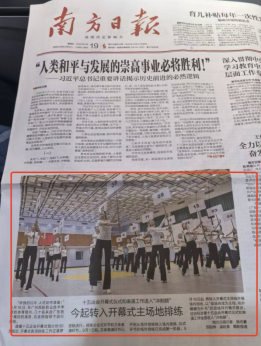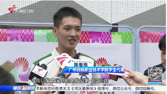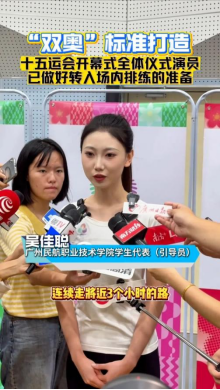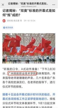 9月18日下午,来自人民日报、央视总台、广东广播电视台、广州电视台、三沙卫视、南方日报、羊城晚报、香港大公文汇报、广州日报等数十家主流媒体的记者走进广州民航职业技术学院(机场路校区),实地探访第十五届全运会开幕式仪式环节的场外训练情况。