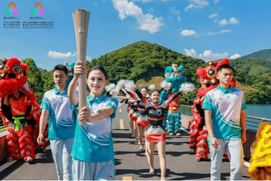 我院学生代表与其他志愿者一同手擎火炬进行展示,吸引了大量市民驻足观看、打卡拍照。尤为引人注目的是,志愿者高擎火炬,泛舟于碧波荡漾的流溪河上,与四周的青山绿水构成一幅动感与静美交融的画卷,岸边观众纷纷记录下这唯美瞬间,对即将到来的体育盛会充满期待。