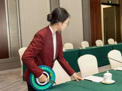 服务期间,广航学子以饱满状态坚守岗位、规范履职。他们站姿挺拔、微笑得体、应答专业,在报到区、会场、休息室、通道等岗位高效协同;从代表迎送、物料分发到客房服务,每一个动作标准到位,每一次服务都贴心细致,充分展现民航学子的职业素养与精神风貌。同学们将课堂所学转化为实战能力,把“敬畏职责、精益求精”的职业追求,书写在政务接待服务一线。
