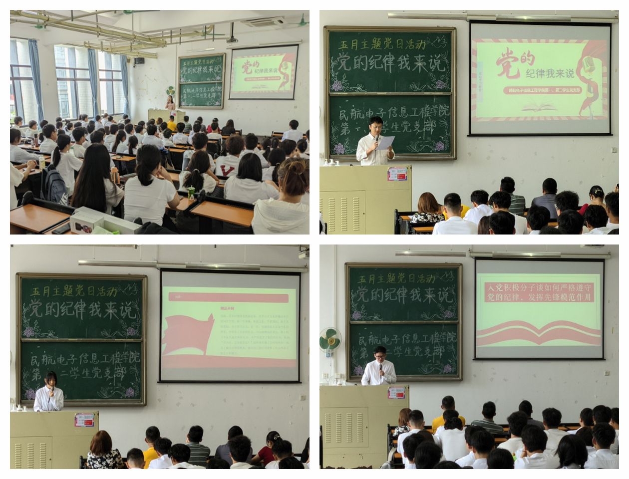 为扎实推进党纪学习教育走深走实,5月28日中午,民航电子信息工程学院第一、第二学生党支部在赤坭校区K3-208联合举办“党的纪律我来说”主题党日活动。学生党支部全体党员、2022级和2023级入党积极分子参加活动。活动由第二学生党支部纪检委员王曦老师主持。