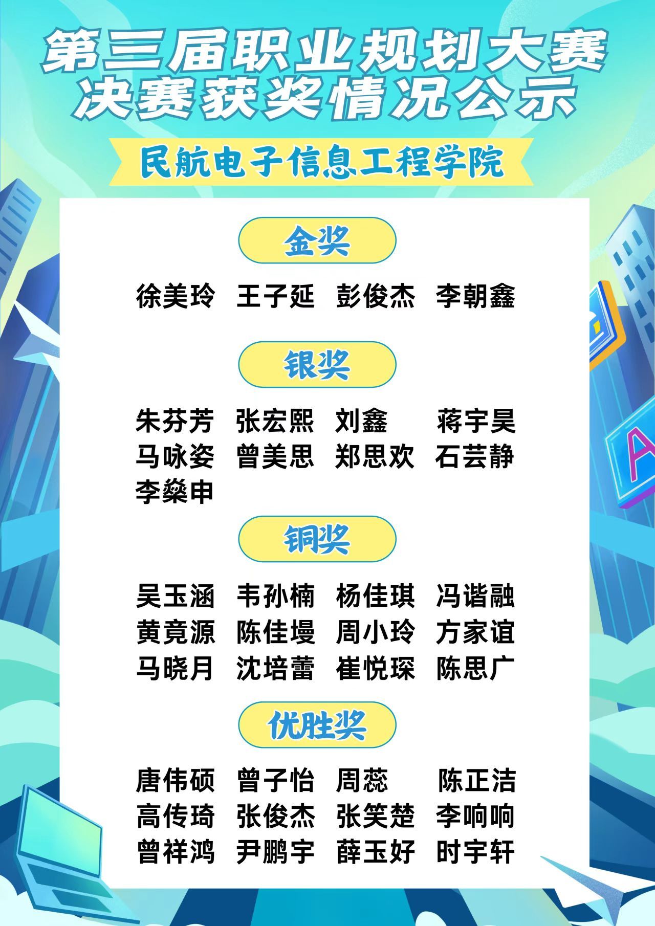 秋日胜景,赛事终章。民航电子信息工程学院第三届大学生职业规划大赛圆满收官。电信学子共同见证了选手们的卓越风采与激烈角逐,这段智慧与梦想的精彩碰撞,为新篇章写下了生动的注脚!