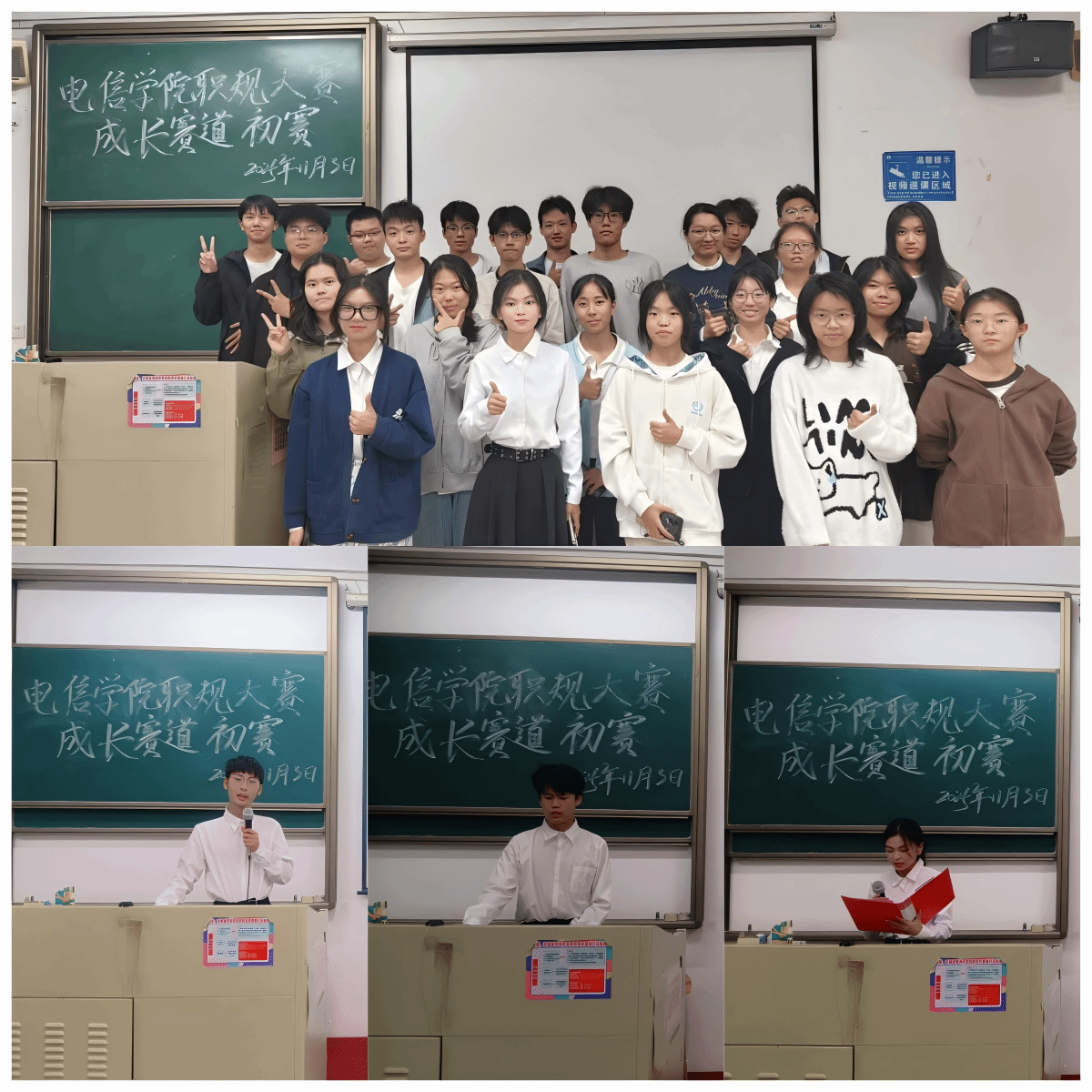 本届职业规划大赛中,各班级优秀选手怀揣职业热忱齐聚赛场,展现亮眼风采与扎实规划能力。大赛设成长、就业两大赛道,经初赛筛选,16位选手晋级决赛。他们结合自身兴趣、专业特色与社会趋势,清晰呈现专属职业蓝图。