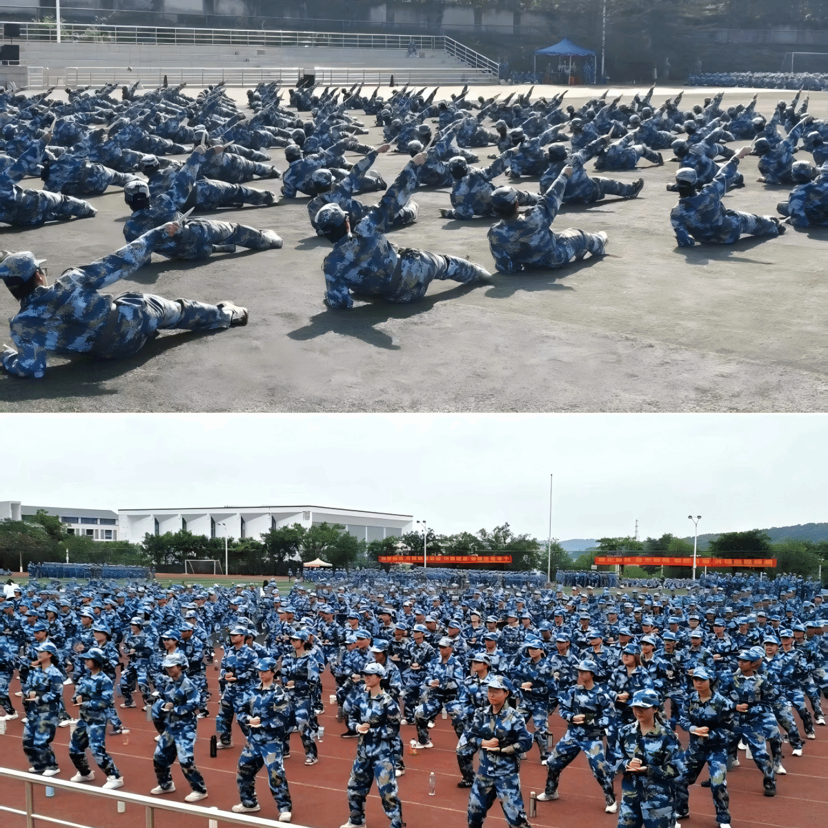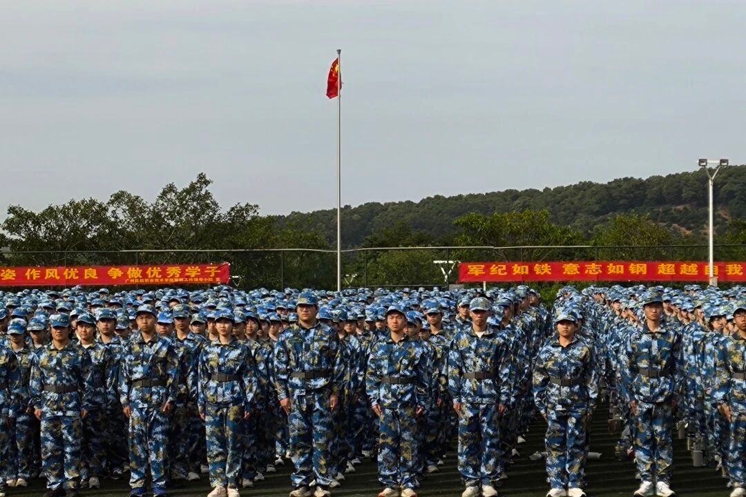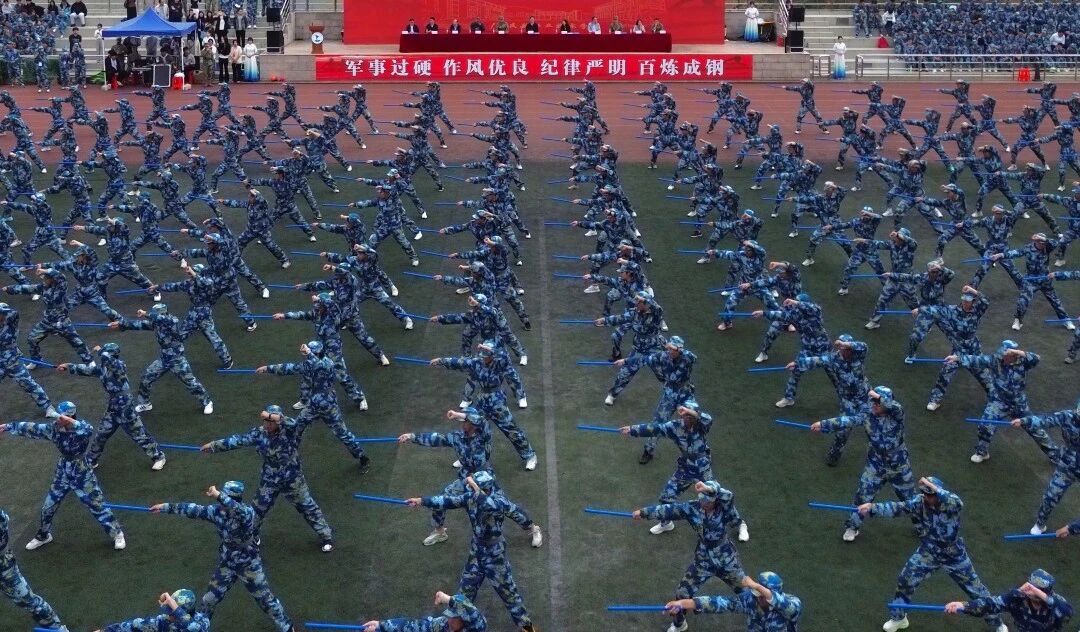 历经日晒雨淋的磨砺,新生们以昂扬姿态,将这段时间的训练成果完美展现。