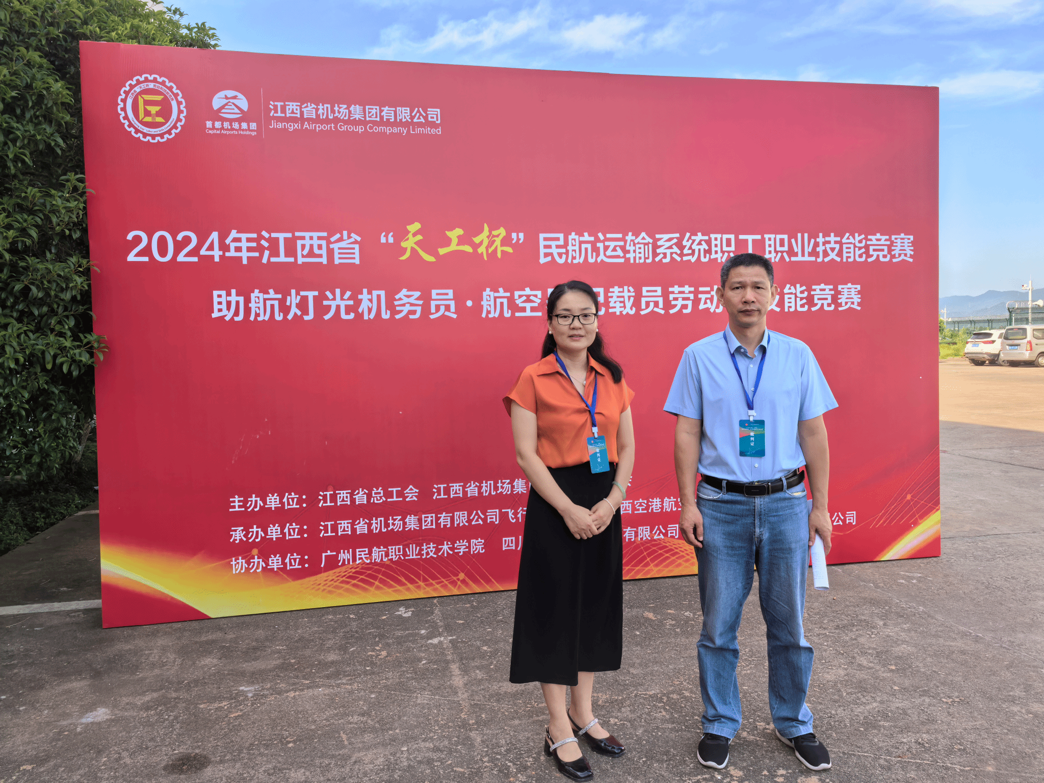受江西省机场集团有限公司工会委员会邀请,我校民航电子信息工程学院副院长陈海涛、机场电工技术专业教研室主任王瑞萍老师于7月8-9日在南昌昌北机场担任由江西省机场集团有限公司主办的2024年江西省“天工杯”助航灯光机务员劳动和技能竞赛的裁判员,其中陈海涛副院长担任裁判长。