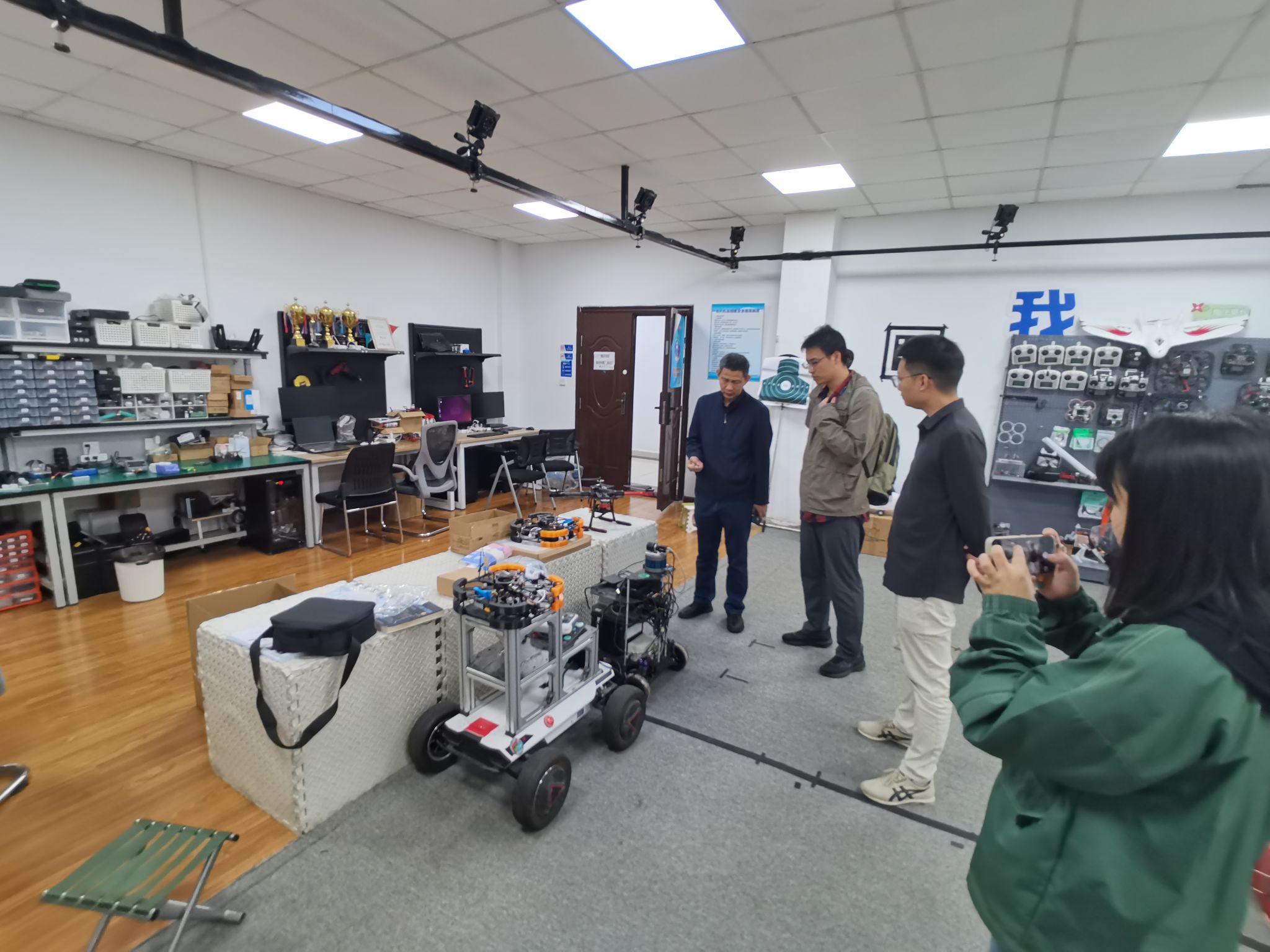 交流期间,团队重点参观了西北工业大学无人系统技术研究院的实验室,深入学习了“智能无人系统综合设计”课程的建设经验。该课程通过空地协同无人系统、自主无人机综合设计和无人系统操作训练三大实践平台,构建了“学科交叉融合-平台功能进阶-工程素养提升”的人才培养体系。课程分阶段实施理论教学与综合实践,并融入智能感知、决策规划等前沿技术模块,为空地协同任务提供全面支持。
