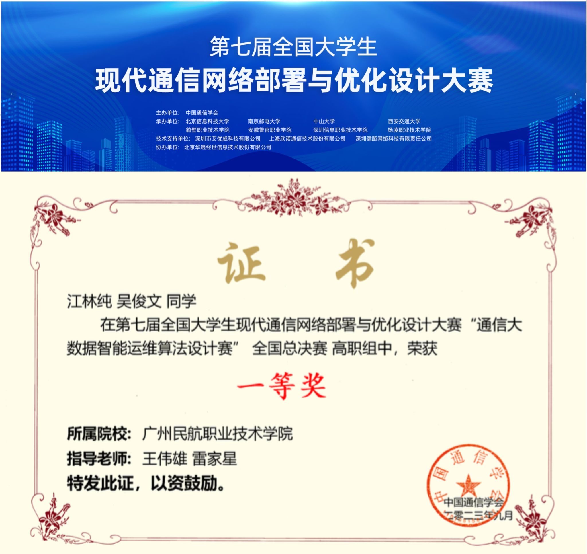 9月,我校民航电子信息工程学院学生参加了由中国通信学会主办的第七届全国大学生现代通信网络部署与优化设计大赛,取得通信大数据智能运维算法设计赛赛道全国总决赛一等奖1项、分区赛一等奖1项,二等奖1项,三等奖2项的优异成绩。