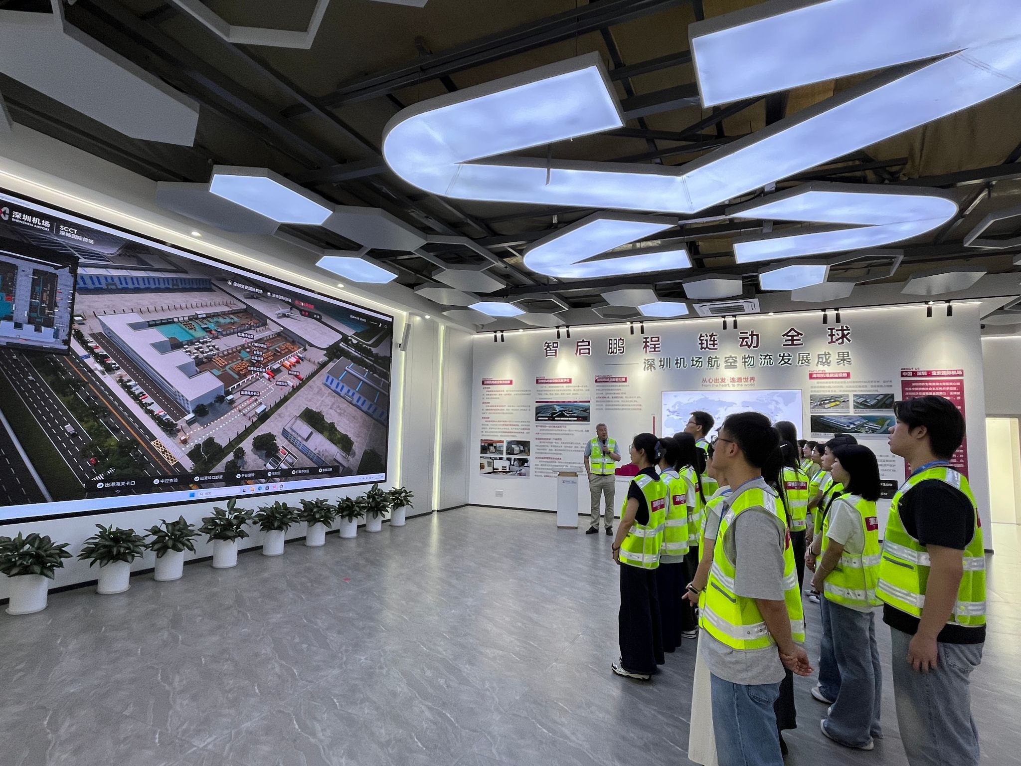 参观过程中,同学们就智能分拣系统的效率提升、海关监管流程等积极提问,与魏经理展开热烈讨论。有学生表示:“此行最大的收获,是把课堂上分散的知识点,在动态的产业现场串联成了完整的知识网络。”国际货站内高效的流程协同与科技应用,不仅加深了学生对专业的理解,也激发了投身民航物流领域的热情。