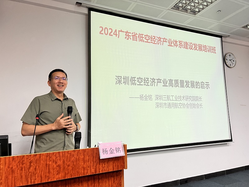 培训班邀请了深圳三航工业技术研究院院长、深圳市通用航空协会创始会长杨金铭、中国民航大学低空经济与低空交通研究中心顾问胡轶强、中国航空学会低空经济专家于翔以及广州亿航智能技术有限公司副总裁贺天星等低空经济产业领域资深专家,分别就深圳低空经济产业高质量发展的启示、低空空域管理及飞行器适航政策解读、低空新型基础设施的组成与建设方案、为低空经济产业发展注入亿航稳定性等专题进行分享。