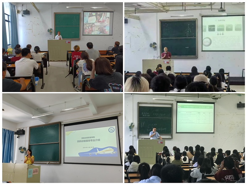 随着新学期的钟声悠扬响起,为助力2024级新生迅速融入大学生活,精准把握所学专业最新发展脉搏,民航经营管理学院教务办于9月份精心组织策划,分专业、分教研室举办了六场别开生面的新生专业介绍会。专业介绍会由教研室主任主持,綦琦副院长、教务办主任、各教研室老师参加,并邀请了行业专家和优秀毕业生,共同为新生们点亮专业探索的明灯。