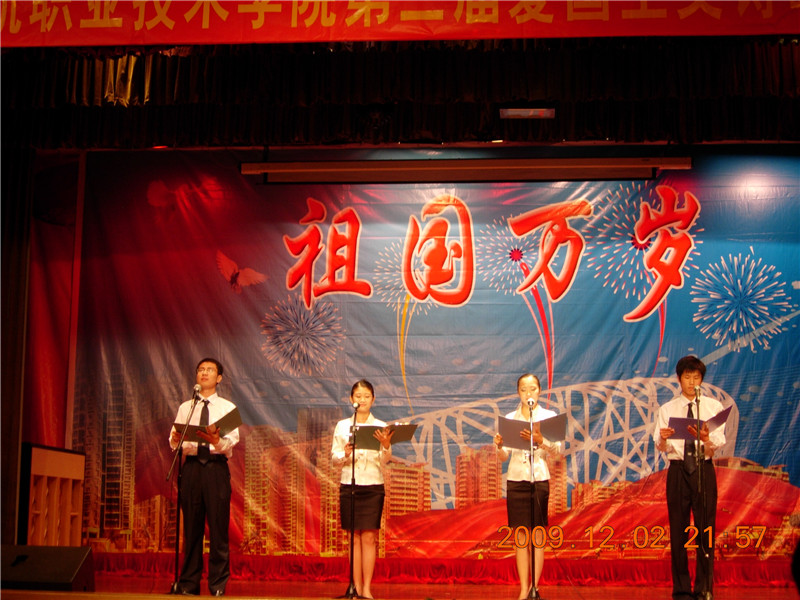 一年一度的爱国主义诗歌朗诵比赛由学校思想政治理论课教学部主办,校团委、学生会协办,同时寻求学校各级领导的有效支持,在资金、场地、人员等方面没有后顾之忧。由于这是思政部负责组织指导的唯一的全校性质的大型学生活动,因此部领导和老师都非常用心投入,在前期选拔、复赛、决赛、节目编排、场地布置等各个环节积极参与,齐心协力,争取活动的圆满成功。活动一般在每年的10-11月份举行,结合思政课的爱国主义教学内容,先由思政课任课老师在各个班级进行最初的宣传选拔,然后再进行复赛决赛。由于是结合课程内容又动员充分,因此每年都吸引了大量的学生积极报名参与,诗歌朗诵节目呈现较高的艺术水准,得到了学校领导的高度赞誉,成为我校学生文化活动的一个重要品牌。