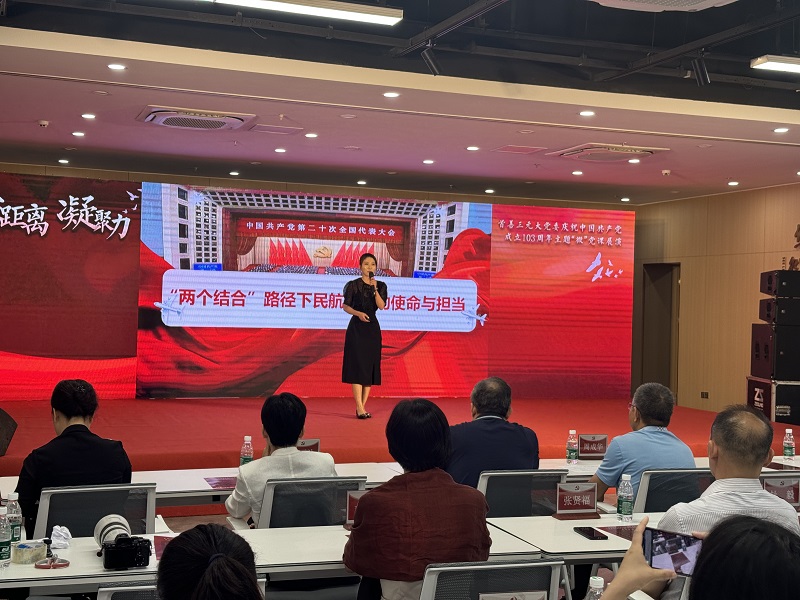 为庆祝建党103周年,弘扬党的优良传统和光辉历程,传承党的理想信念和伟大精神,首善三元大党委及共建单位于2024年6月26日在广东省机场集团“T+”空间联合举办了“零距离·凝聚力”主题“微”党课展演活动。马克思主义学院教师康淑代表广州民航职业技术学院展示了党建成果,马克思主义学院曾祥耿副院长、郜会远副教授、龙逸老师到场参加活动。