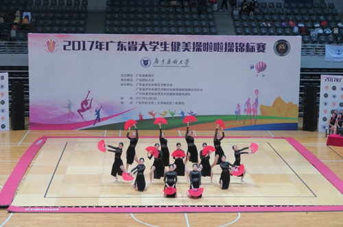 12月2日,由广东省教育厅主办的“2017年广东省大学生健美操啦啦操锦标赛”在广东药科大学体育馆举行,全省共56所高校1500多人参加了此次比赛。我校健美操、街舞队在学校各级领导与各二级学院老师的大力支持下,派出35名队员共参加四个项目的比赛。经过激烈的角逐,我校健儿获得三个冠军、一个第六名,分别是街舞原创自编套路大集体冠军、街舞原创自编套路小集体冠军、爵士啦啦操原创自编套路冠军和徒手健身操原创自编套路第六名,并且获得团体总分第四的好成绩以及以网络人气票数7308票的高票获得本次大赛的最佳明星队伍大奖。