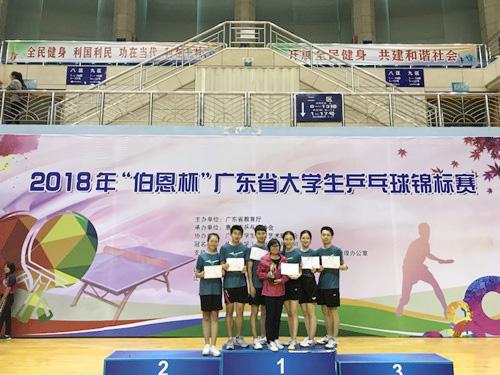 12月22日至25日,由广东省教育厅主办、广东省体育艺术联合会协办的“2018年广东省大学生乒乓球锦标赛”在惠州江北体育馆圆满落幕,来自全省70多所高校89支队伍、近800名乒乓球运动员参加了本次比赛。