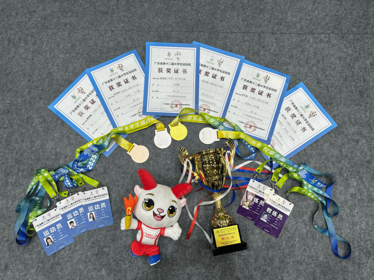 2025年5月10日,广东省第十二届大学生运动会健美操比赛在暨南大学拉开帷幕。本届赛事由广东省教育厅、广东省体育局主办、暨南大学承办,吸引全省151所高校的12000余名运动员参赛,参赛规模创历史新高。我校健美操队在竞技健美操男子单人项目中摘得赛事首金,并取得1金1银1铜、团体总分第三名的优异成绩。