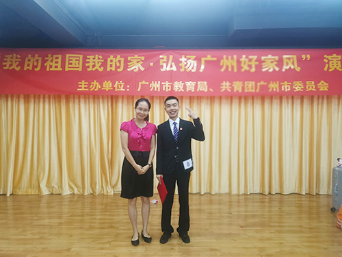 7月15日下午,“我的祖国我的家,弘扬广州好家风”演讲比赛决赛在广州市青年文化宫举行。本次演讲比赛由广州市教育局、共青团广州市委员会主办,分青少年组和成年组。比赛历时两个多月,经过层层选拔,共有17支院校代表队入围广州市决赛。经过激烈的角逐,最终,我校飞机维修工程学院2017级飞机发动机维修专业2班刘嘉杰同学在众多参赛者中脱颖而出,荣获广州市成年组一等奖,刘红敏老师荣获优秀指导老师奖。